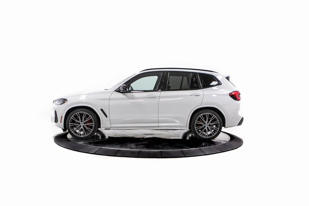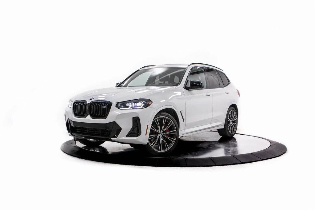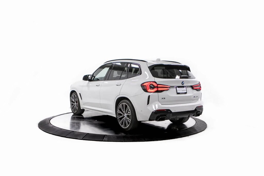 CARFAX One-Owner. Clean CARFAX. 8-Speed Automatic Sport, 12 Speakers, 4-Wheel Disc Brakes, ABS brakes, Active Park Distance Control, Adaptive suspension, Air Conditioning, Alloy wheels, AM/FM Radio, AM/FM radio: SiriusXM, Apple CarPlay & Android Auto Compatibility, Auto High-beam Headlights, Auto-dimming door mirrors, Auto-dimming Rear-View mirror, Automatic temperature control, BMW Assist eCall, BMW TeleServices, Brake assist, Bumpers: body-color, Carbon Fiber Trim, Connected Package Pro, ConnectedDrive Services, Delay-off headlights, Driver door bin, Driver vanity mirror, Dual front impact airbags, Dual front side impact airbags, Electronic Stability Control, Emergency communication system: BMW Assist eCall, Enhanced USB & Bluetooth w/Smartphone Integration, Extended Shadowline Trim, Exterior Parking Camera Rear, Four wheel independent suspension, Front anti-roll bar, Front Bucket Seats, Front Center Armrest, Front dual zone A/C, Front reading lights, Fully automatic headlights, Garage door transmitter, harman/kardon Surround Sound System, Head-Up Display, Heated door mirrors, Heated Front Seats, Heated Steering Wheel, Hi-Fi Sound System, Illuminated entry, Increased Top Speed Limiter, Knee airbag, Leather steering wheel, Live Cockpit Pro w/Navigation, Low tire pressure warning, Lumbar Support, M Shadowline Lights, M Sport Brakes w/Red Calipers, Memory seat, Navigation System, Occupant sensing airbag, Outside temperature display, Overhead airbag, Panic alarm, Parking Assistant Plus, Passenger door bin, Passenger vanity mirror, Perforated SensaTec Upholstery, Power door mirrors, Power driver seat, Power Front Seats, Power Liftgate, Power moonroof, Power passenger seat, Power steering, Power windows, Radio data system, Rain sensing wipers, Rear air conditioning, Rear anti-roll bar, Rear reading lights, Rear seat center armrest, Rear window defroster, Rear window wiper, Rear-View Camera, Remote keyless entry, Security system, SiriusXM w/360L & 1 Yr Platinum Plan Subscription, Speed control, Speed-sensing steering, Speed-Sensitive Wipers, Split folding rear seat, Spoiler, Sport Seats, Sport steering wheel, Steering wheel mounted audio controls, Surround View w/3D View, Tachometer, Telescoping steering wheel, Tilt steering wheel, Traction control, Trip computer, Turn signal indicator mirrors, Variably intermittent wipers, Wheels: 19 x 7.5 M Y-Spoke Bi-Color (Style 887M), Wheels: 21 x 8.5 Fr & 21 x 9.5 Rr (Style 726i), WiFi Hotspot, 8-Speed Automatic Sport. Alpine White 2024 BMW X3 M40i M40i AWD 8-Speed Automatic Sport I6