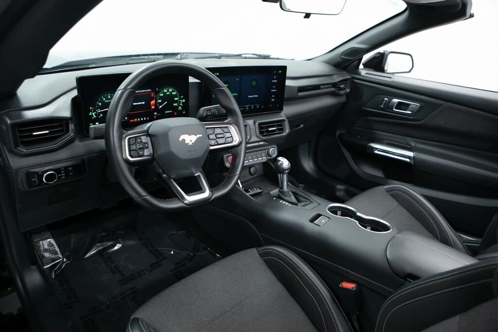 CARFAX One-Owner. Clean CARFAX. 4-Wheel Disc Brakes, 9 Speakers, 9-Speaker Stereo System, ABS brakes, Air Conditioning, Alloy wheels, AM/FM radio: SiriusXM with 360L, AM/FM Stereo, Auto High-beam Headlights, Automatic temperature control, Brake assist, Bumpers: body-color, Cloth/Vinyl Bucket Seats, Compass, Convertible roof lining, Delay-off headlights, Driver door bin, Driver vanity mirror, Dual front impact airbags, Dual front side impact airbags, Dual-Zone Electronic Automatic Temperature Control, Electronic Stability Control, Emergency communication system: 911 Assist, Exterior Parking Camera Rear, Four wheel independent suspension, Front anti-roll bar, Front Bucket Seats, Front Center Armrest, Front dual zone A/C, Front reading lights, Fully automatic headlights, Glass rear window, Heated front seats, Illuminated entry, Knee airbag, Leather Shift Knob, Low tire pressure warning, Occupant sensing airbag, Outside temperature display, Overhead console, Panic alarm, Passenger door bin, Passenger vanity mirror, Power convertible roof, Power door mirrors, Power driver seat, Power steering, Power windows, Radio data system, Rain sensing wipers, Rear anti-roll bar, Rear Parking Sensors, Rear window defroster, Remote keyless entry, Security system, SiriusXM w/360L & HD Radio, Speed control, Speed-sensing steering, Speed-Sensitive Wipers, Sport steering wheel, Steering wheel mounted audio controls, SYNC 4.0 QNX, Tachometer, Telescoping steering wheel, Tilt steering wheel, Traction control, Trip computer, Variably intermittent wipers, Voltmeter, Wheels: 18 x 8 Machined-Face Aluminum. Odometer is 21210 miles below market average! Shadow Black 2024 Ford Mustang EcoBoost EcoBoost RWD 10-Speed Automatic EcoBoost 2.3L I4 GTDi DOHC Turbocharged VCT