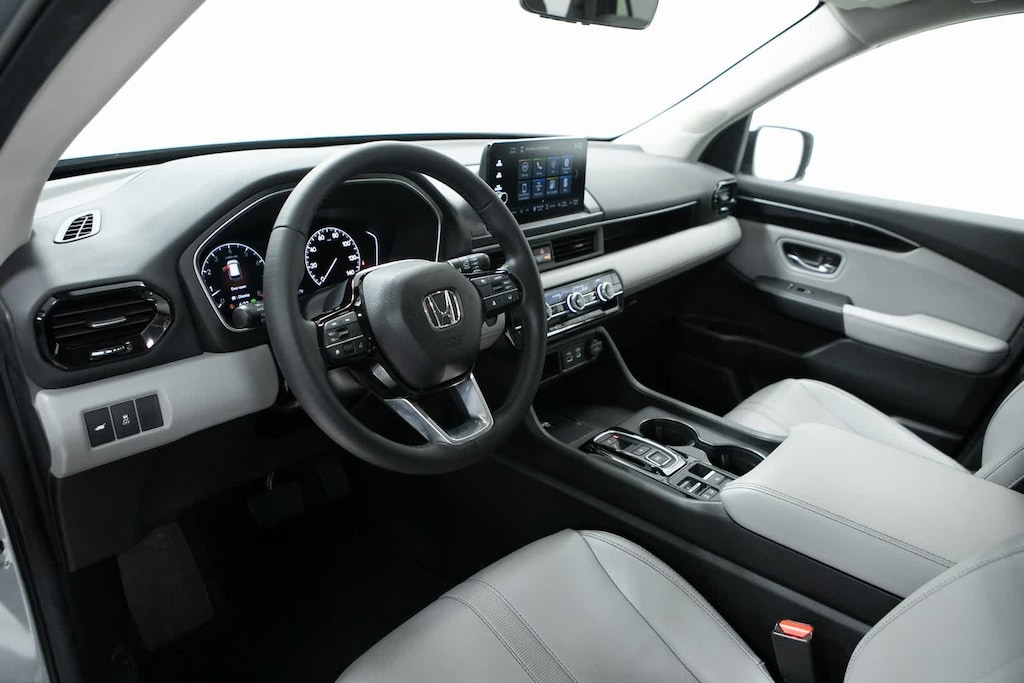 CARFAX One-Owner. Clean CARFAX. 3rd row seats: split-bench, 4-Wheel Disc Brakes, 9 Speakers, ABS brakes, Adaptive Cruise Control: Adaptive Cruise Control (ACC) with Low-Speed Follow, Air Conditioning, Alloy wheels, AM/FM radio: SiriusXM, Apple CarPlay/Android Auto, Auto High-beam Headlights, Auto-dimming Rear-View mirror, Automatic temperature control, Axle Ratio: 4.167, Blind Spot Information (BSI) System warning, Brake assist, Bumpers: body-color, Delay-off headlights, Driver door bin, Driver vanity mirror, Dual front impact airbags, Dual front side impact airbags, Electronic Stability Control, Emergency communication system: HondaLink Assist, Exterior Parking Camera Rear, Four wheel independent suspension, Front anti-roll bar, Front Bucket Seats, Front Center Armrest, Front dual zone A/C, Front fog lights, Front reading lights, Fully automatic headlights, Garage door transmitter: HomeLink, Heated door mirrors, Heated Front Bucket Seats, Heated front seats, Illuminated entry, Knee airbag, Lane departure: Lane Keeping Assist System (LKAS) active, Leather Seat Trim, Low tire pressure warning, Memory seat, Occupant sensing airbag, Outside temperature display, Overhead airbag, Overhead console, Panic alarm, Passenger door bin, Passenger vanity mirror, Power door mirrors, Power driver seat, Power Liftgate, Power passenger seat, Power steering, Power windows, Radio data system, Radio: 245-Watt Audio System, Rear air conditioning, Rear anti-roll bar, Rear reading lights, Rear seat center armrest, Rear window defroster, Rear window wiper, Reclining 3rd row seat, Remote keyless entry, Security system, Speed control, Speed-sensing steering, Speed-Sensitive Wipers, Split folding rear seat, Spoiler, Steering wheel mounted audio controls, Tachometer, Telescoping steering wheel, Tilt steering wheel, Traction control, Trip computer, Turn signal indicator mirrors, Variably intermittent wipers, Wheels: 18 Pewter Gray Machined Face. Odometer is 3671 miles below market average! Lunar Silver Metallic 2024 Honda Pilot EX-L 8 Passenger EX-L 8 Passenger FWD 10-Speed Automatic 3.5L V6 DOHC 24V