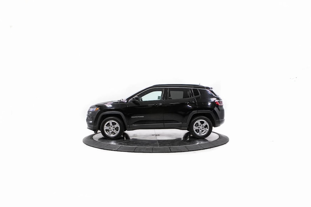 CARFAX One-Owner. Clean CARFAX. 4WD, 17 x 7.0 Aluminum Wheels, 3.73 Final Drive Ratio, 4-Wheel Disc Brakes, 6 Speakers, ABS brakes, Air Conditioning, Alloy wheels, AM/FM radio: SiriusXM, Auto High-beam Headlights, Brake assist, Bumpers: body-color, Compass, Delay-off headlights, Driver door bin, Driver vanity mirror, Dual front impact airbags, Dual front side impact airbags, Electronic Stability Control, Four wheel independent suspension, Front anti-roll bar, Front Bucket Seats, Front Center Armrest w/Storage, Front fog lights, Front License Plate Bracket, Front reading lights, Fully automatic headlights, Heated door mirrors, Illuminated entry, Knee airbag, Leather Shift Knob, Low tire pressure warning, Occupant sensing airbag, Outside temperature display, Overhead airbag, Overhead console, Panic alarm, ParkView Rear Back-Up Camera, Passenger door bin, Passenger vanity mirror, Power door mirrors, Power steering, Power windows, Premium Cloth/Vinyl Bucket Seats, Quick Order Package 29J, Radio: Uconnect 5 w/10.1 Display, Rear anti-roll bar, Rear seat center armrest, Rear window defroster, Rear window wiper, Remote keyless entry, Security system, Speed control, Split folding rear seat, Spoiler, Steering wheel mounted audio controls, Tachometer, Telescoping steering wheel, Tilt steering wheel, Traction control, Trip computer, Variably intermittent wipers, 4WD. Odometer is 2699 miles below market average! Diamond Black Crystal Pearlcoat 2023 Jeep Compass Latitude Latitude 4WD 8-Speed Automatic 2.0L I4 DOHC