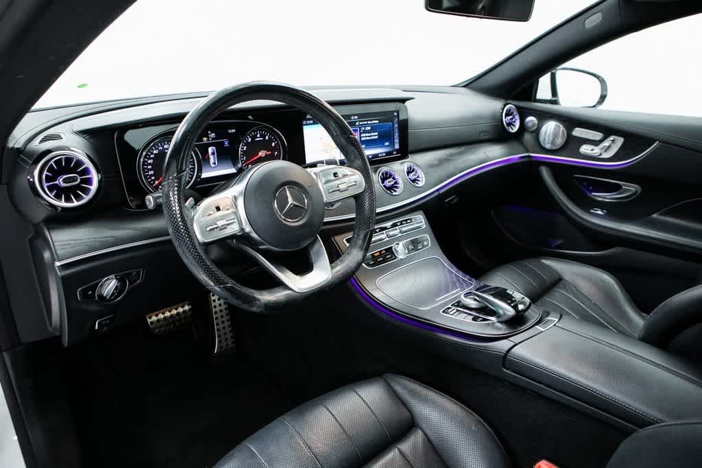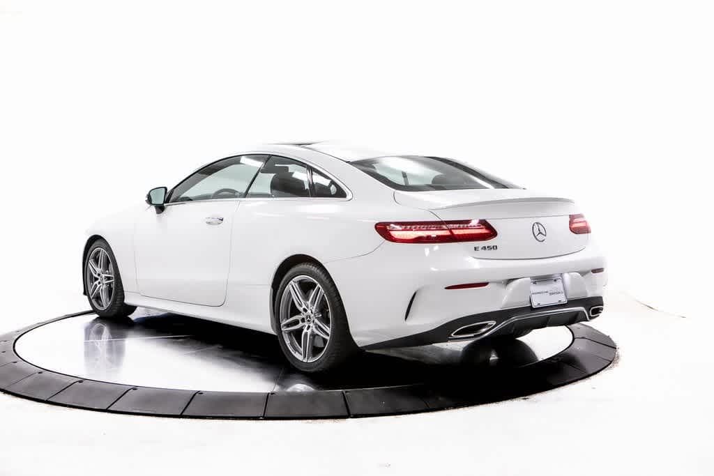 4-Way Lumbar Support, 4-Wheel Disc Brakes, 8 Speakers, ABS brakes, Air Conditioning, Alloy wheels, AM/FM radio, Android Auto®, Anti-whiplash front head restraints, Apple CarPlay®, Apple CarPlay®/Android Auto®, Auto tilt-away steering wheel, Auto-dimming door mirrors, Auto-dimming Rear-View mirror, Automatic temperature control, Brake assist, Bumpers: body-color, Center Console in Light Brown Sen Wood, Delay-off headlights, Driver door bin, Driver vanity mirror, Dual front impact airbags, Dual front side impact airbags, DVD-Audio, Electronic Stability Control, Emergency communication system: mbrace2, Extended Mobility Tires, Exterior Parking Camera Rear, Four wheel independent suspension, Front anti-roll bar, Front Bucket Seats, Front Center Armrest, Front dual zone A/C, Front reading lights, Fully automatic headlights, Garage door transmitter: Homelink, Genuine wood console insert, Genuine wood dashboard insert, Genuine wood door panel insert, HD Radio w/SIRIUS Satellite & Real-Time Traffic, Head restraints memory, Heated door mirrors, Heated front seats, Illuminated entry, Knee airbag, Leather Shift Knob, Leather Upholstery, Low tire pressure warning, Memory seat, Navigation system: COMAND®, Occupant sensing airbag, Outside temperature display, Overhead airbag, Overhead console, Panic alarm, Passenger door bin, Passenger vanity mirror, Power adjustable front head restraints, Power door mirrors, Power driver seat, Power Front Seats w/Memory, Power moonroof: Panorama, Power passenger seat, Power Passenger Seat w/Memory, Power steering, Power windows, Premium audio system: COMAND®, Radio data system, Radio: COMAND® Navigation, Rain sensing wipers, Rear anti-roll bar, Rear window defroster, Remote keyless entry, Security system, Smartphone Integration, Speed control, Speed-sensing steering, Split folding rear seat, Steering wheel memory, Steering wheel mounted audio controls, Tachometer, Telescoping steering wheel, Tilt steering wheel, Traction control, Trip computer, Turn signal indicator mirrors, Variably intermittent wipers, Weather band radio, Wheels: 18 Twin 5-Spoke. White 2019 Mercedes-Benz E-Class E 450 E 450 RWD 9-Speed Automatic 3.0L V6 BiTurbo