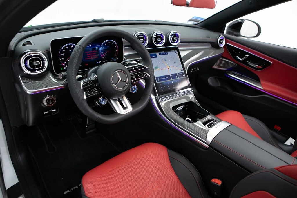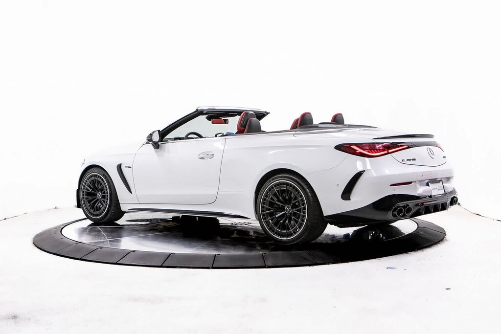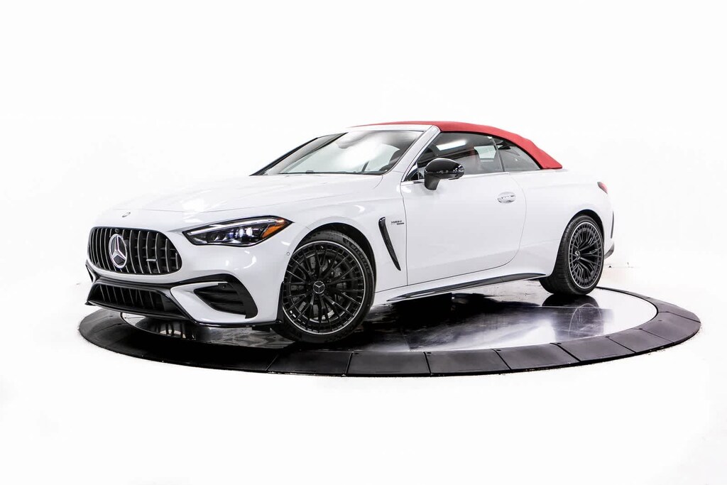 Clean CARFAX. 3.0L I6 Turbo, 11.9 Center Touchscreen Display, 15 Speakers, 3 USB-C Ports, 4-Wheel Disc Brakes, ABS brakes, Adaptive suspension, Air Conditioning, Alloy wheels, AM/FM Radio, AM/FM radio: SiriusXM w/360L, Apple CarPlay®/Android Auto®, Auto High-beam Headlights, Auto tilt-away steering wheel, Auto-dimming door mirrors, Auto-dimming Rear-View mirror, Automatic temperature control, Black Fine Structure Center Console, Brake assist, Bumpers: body-color, Child-Seat-Sensing Airbag, Compass, Convertible roof lining, Convertible roof wind blocker, Delay-off headlights, Driver door bin, Driver vanity mirror, Dual front impact airbags, Dual front side impact airbags, Electronic Stability Control, Emergency communication system: Mercedes-Benz Emergency Call Service, Exterior Parking Camera Rear, Four wheel independent suspension, Front anti-roll bar, Front Bucket Seats, Front Center Armrest, Front dual zone A/C, Front reading lights, Fully automatic headlights, Garage door transmitter: HomeLink, Glass rear window, HD Radio, Head restraints memory, Heated door mirrors, Heated Front Seats, Heated front seats, Illuminated entry, Integrated roll-over protection, Knee airbag, Leather steering wheel, Low tire pressure warning, MB Navigation, MB-Tex/Microfiber Upholstery w/Red Stitching, Memory seat, Navigation system: MBUX, Occupant sensing airbag, Outside temperature display, Overhead airbag, Overhead console, Panic alarm, Passenger door bin, Passenger vanity mirror, Power adjustable front head restraints, Power convertible roof, Power door mirrors, Power driver seat, Power passenger seat, Power steering, Power windows, Radio data system, Rain sensing wipers, Rear anti-roll bar, Rear fog lights, Rear window defroster, Remote keyless entry, Security system, SiriusXM Satellite Radio, Speed control, Speed-sensing steering, Split folding rear seat, Spoiler, Sport steering wheel, Steering wheel memory, Steering wheel mounted audio controls, Tachometer, Telescoping steering wheel, Tilt steering wheel, Traction control, Trip computer, Turn signal indicator mirrors, Variably intermittent wipers, Wheels: 19 AMG® Multi-Spoke w/Black Accents, Wireless Android Auto®, Wireless Apple CarPlay®, 3.0L I6 Turbo. MANUFAKTUR Moonlight White Metallic 2026 Mercedes-Benz CLE 53 AMG® 4MATIC® CLE 53 AMG® 4MATIC® 4MATIC® 9-Speed Automatic 3.0L I6 Turbo