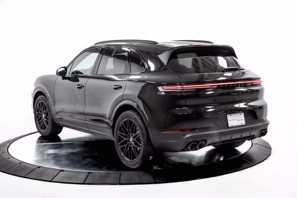 Clean CARFAX. Black Leather, 10 Speakers, 14-Way Power Seats w/Comfort Memory, 4-Wheel Disc Brakes, 4-Zone Climate Control, 8-Way Power Seats, ABS brakes, Adaptive Cruise Control w/Lane Keep Assist (LKA), Adaptive suspension, Air Conditioning, Alloy wheels, AM/FM radio: SiriusXM w/360L, Apple CarPlay & Android Auto, Artificial Leather Seat Trim, Audio memory, Auto-dimming door mirrors, Auto-dimming Rear-View mirror, Automatic temperature control, BOSE Surround Sound System, Brake assist, Bumpers: body-color, Compass, Delay-off headlights, Driver door bin, Driver vanity mirror, Dual front impact airbags, Dual front side impact airbags, Electronic Stability Control, Exterior Parking Camera Rear, Four wheel independent suspension, Front anti-roll bar, Front Bucket Seats, Front Center Armrest, Front dual zone A/C, Front reading lights, Front Ventilated Seats, Fully automatic headlights, Garage door transmitter: HomeLink, HD-Matrix Design LED Headlights, Heated door mirrors, Heated front seats, Heated steering wheel, HVAC memory, Illuminated entry, Knee airbag, Leather steering wheel, Low tire pressure warning, Memory seat, Navigation System, Occupant sensing airbag, Outside temperature display, Overhead airbag, Overhead console, Panic alarm, Panoramic Roof System, Passenger door bin, Passenger vanity mirror, Porsche Communication Management, Power door mirrors, Power driver seat, Power Liftgate, Power passenger seat, Power steering, Power windows, Premium Package Plus, Radio data system, Rain sensing wipers, Rear anti-roll bar, Rear fog lights, Rear Heated Seats, Rear reading lights, Rear seat center armrest, Rear side impact airbag, Rear window defroster, Rear window wiper, Remote keyless entry, Security system, Speed control, Speed-sensing steering, Split folding rear seat, Spoiler, Steering wheel mounted audio controls, Tachometer, Telescoping steering wheel, Tilt steering wheel, Traction control, Trip computer, Turn signal indicator mirrors, Variably intermittent wipers, Voltmeter, Wheels: 20 Cayenne Design, Black Leather. Chromite Black Metallic 2025 Porsche Cayenne Base AWD 8-Speed Automatic with Tiptronic 3.0L V6